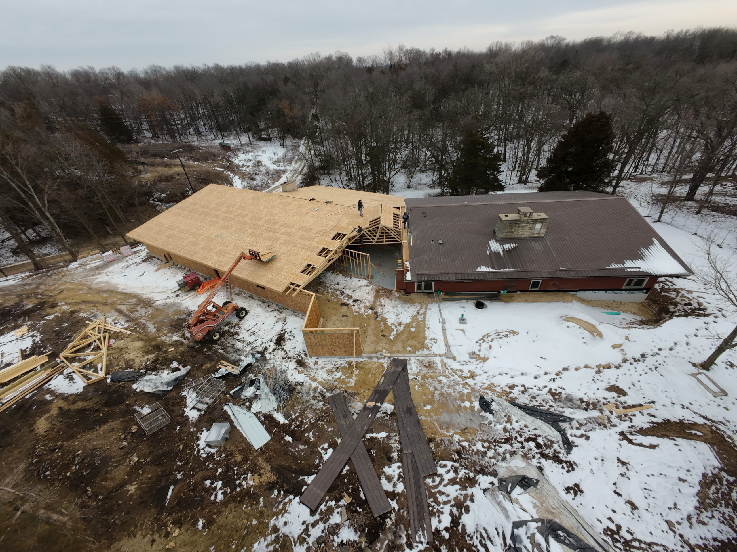 Check out photos of the work being done by Loecke Building Systems of Manchester! Roof trusses have been going up in January, and work is progressing well.