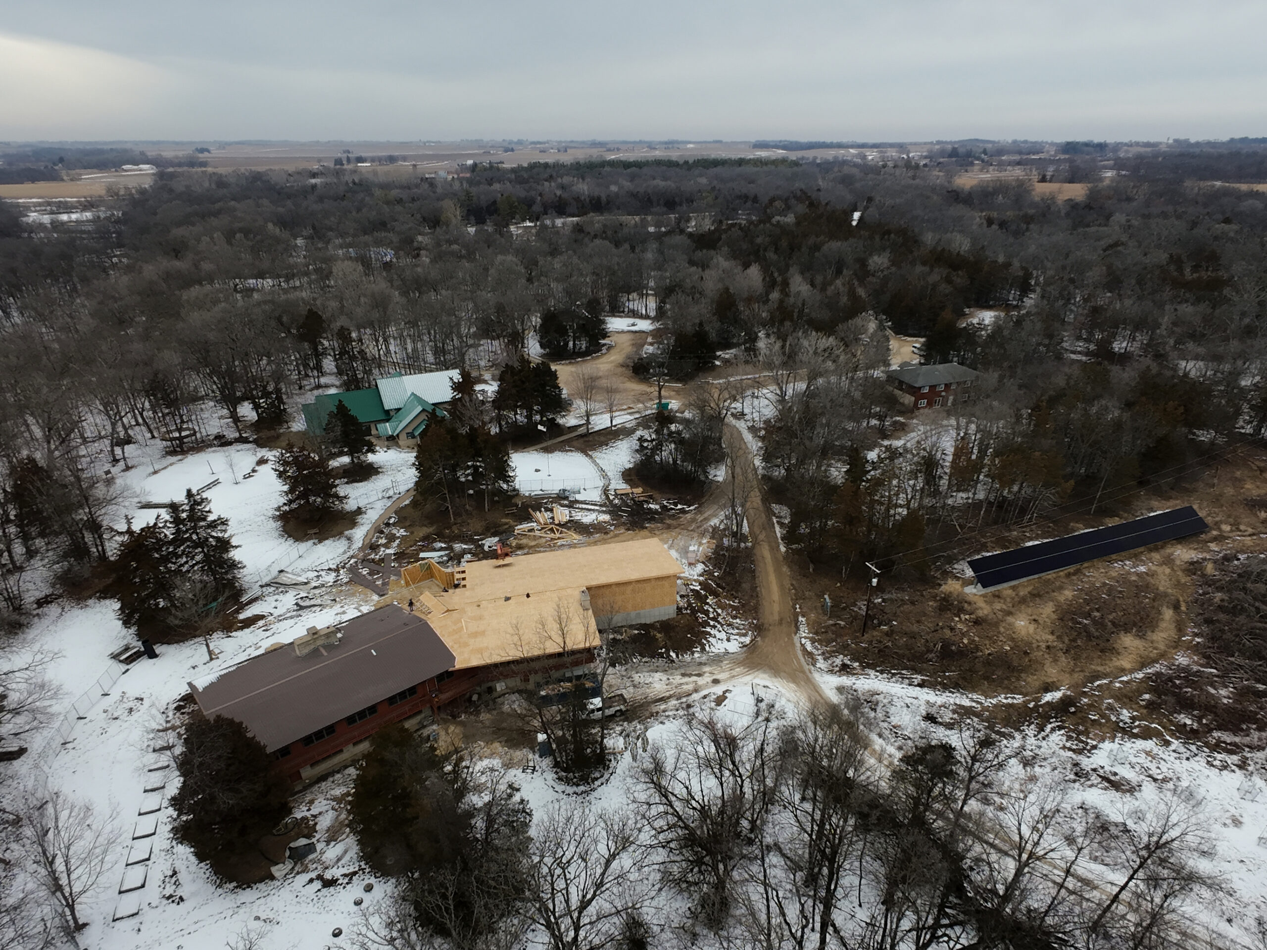 The solar panels were installed in March 2024, in a spot behind Hickory Lodge where some trees have been cleared. The array will power Hickory and the renewed Cedar Lodge. We will also have net-metering, which means payback for extra power.