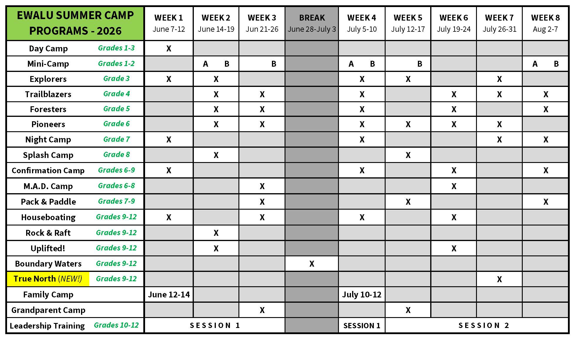 Check out the 2026 Summer Program Schedule Grid!