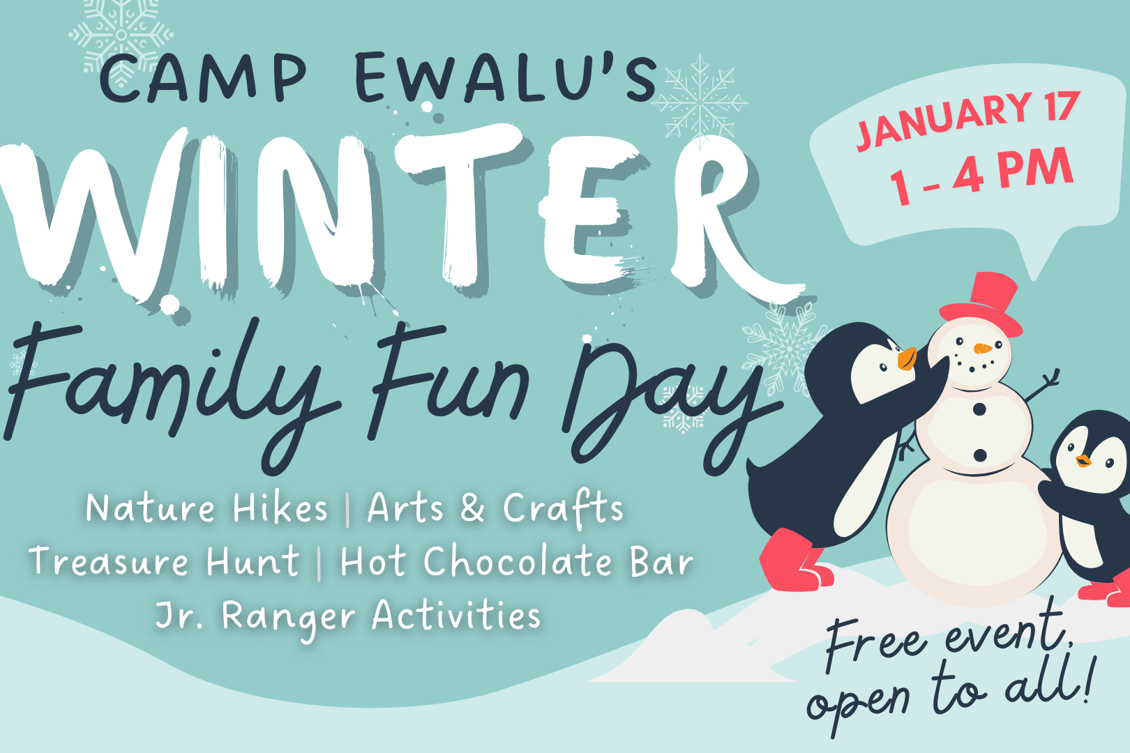 Camp Ewalu invites families of all shapes and sizes for a FREE family-friendly Enrichment Event from 1 to 4 p.m. on Saturday, January 17, 2026. Check in that day at the Creation Center, located at Ewalu’s main site just 3 miles west of Strawberry Point.